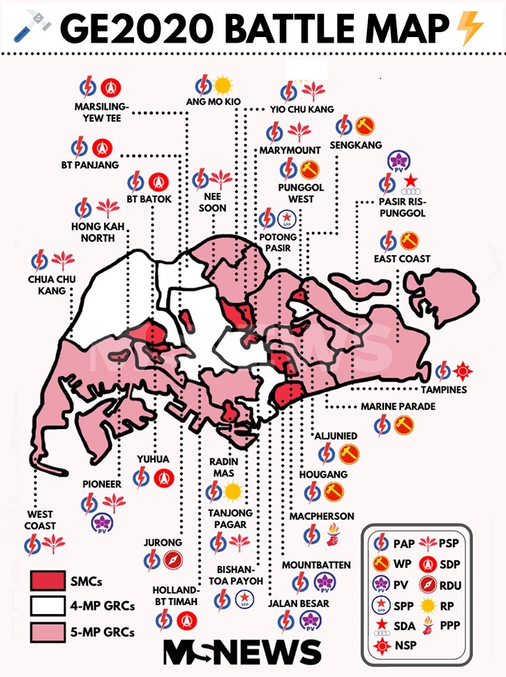 from the nomination map, it does not appear the two independents mentioned earlier turned up to register as candidates, but someone else did; two of the electorates Pioneer and Pasir Ris have two opposition parties/individuals competing with PAP. On the other hand, Jurong will be the new party RDU against PAP - the competition foreshadowed by PVP did not turn up